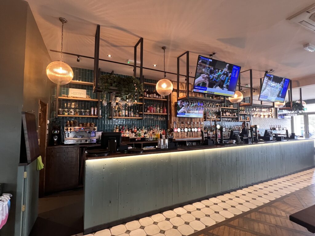 It was just as I remembered, a rustic welcoming interior with ample choice of seating and cosy booths, as well as a large fully stocked bar and stage area for live singers and entertainment- something you will find as a regular occurrence at The Waterside Bar + Kitchen, alongside DJ sets and live sports, given they are positioned within the hub of Nottingham’s landmark sports stadiums, including the Nottingham Forest City Ground, Notts County Stadium and Trent Bridge Cricket Ground.